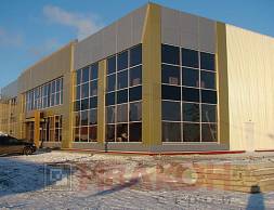 - Стены: выполнены из сендвич-панелей с базальтовым утеплителем 150 мм, отделка алюминиевым композитом "алюкобонд"